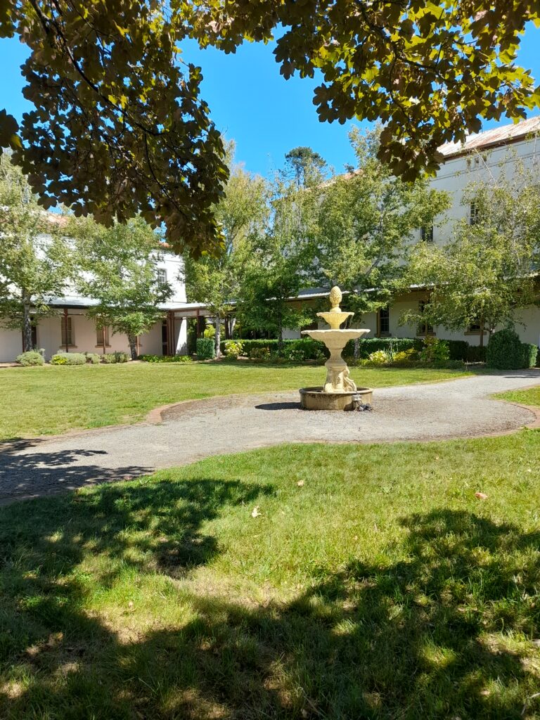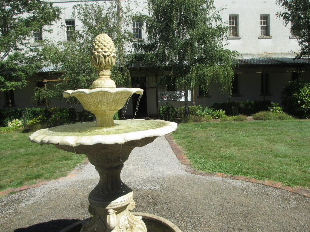 The Mayday Hills Arts Society is situated in the central wing administration offices, which include an airing court featuring a central water fountain. This area once provided access to the female patients’ wards on one side and the Bijou Theatre on the other. Originally, patients’ outdoor access was strictly supervised and limited to the enclosed airing courts. However, with the adoption of the ‘open door’ policy in the 1950s, patients were granted greater freedom of movement.